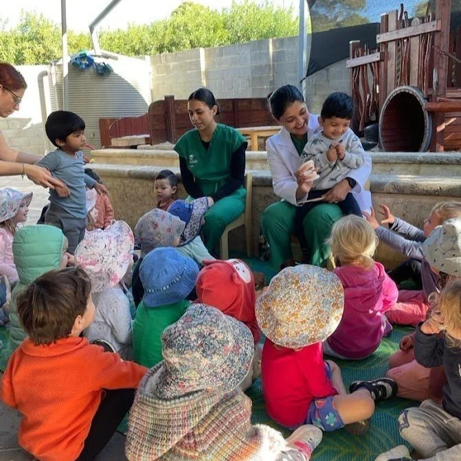 Led oral health talks for pre-primary students, covering oral hygiene, nutrition, and environmental responsibility. Each child received a compostable bamboo toothbrush designed by Dr. Ash.